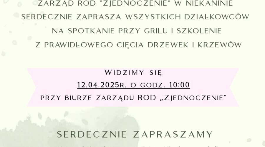 ZAPROSZENIE NA SZKOLENIE DZIAŁKOWCÓW